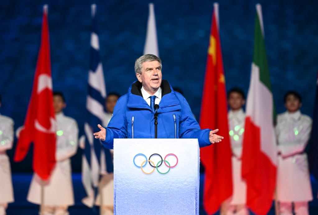 2月20日晚,北京第二十四屆冬季奧林匹克運(yùn)動會閉幕式在國家體育場舉行。這是國際奧委會主席巴赫致辭。新華社記者李尕攝