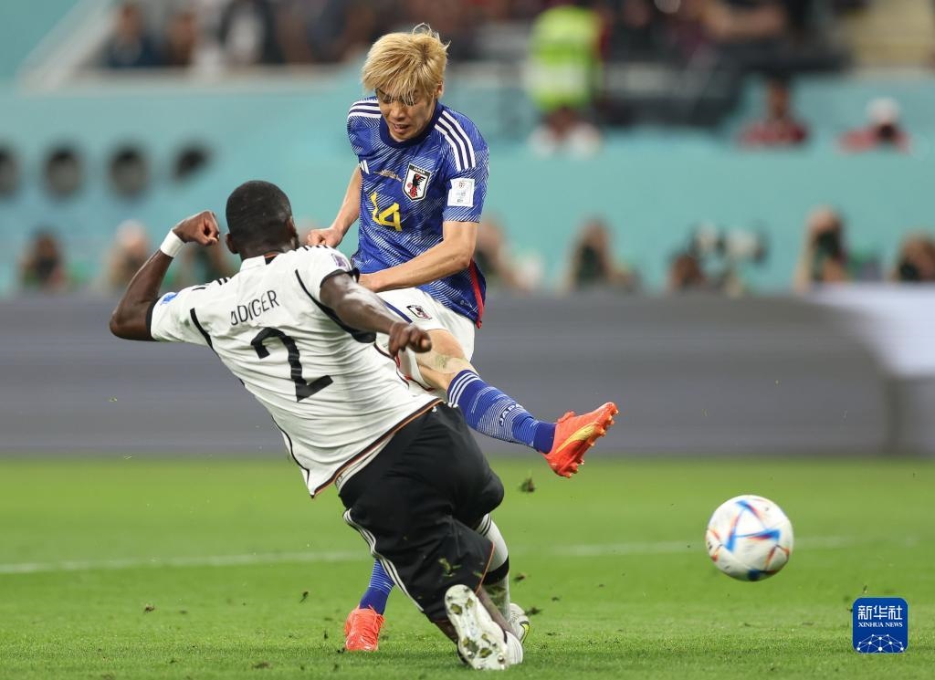當(dāng)日,在卡塔爾多哈哈里發(fā)國際體育場(chǎng)進(jìn)行的2022卡塔爾世界杯足球賽E組比賽中,日本隊(duì)以2比1戰(zhàn)勝德國隊(duì)。