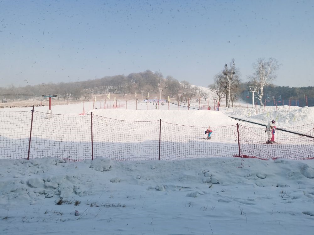 鹿群不遠(yuǎn)處,便是平山神鹿滑雪場(chǎng),雪道上不少兒童正在這里進(jìn)行研學(xué)活動(dòng)。