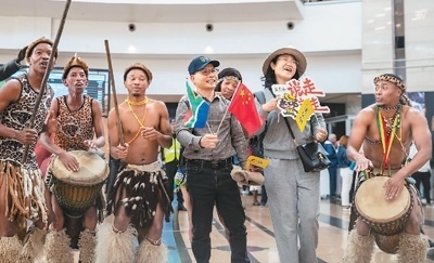 中國旅游團抵達南非,南非旅游局在機場舉行歡迎儀式。 新華社記者 張譽東攝