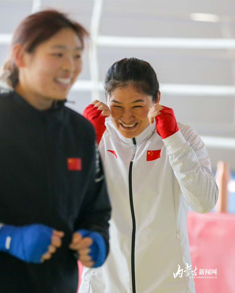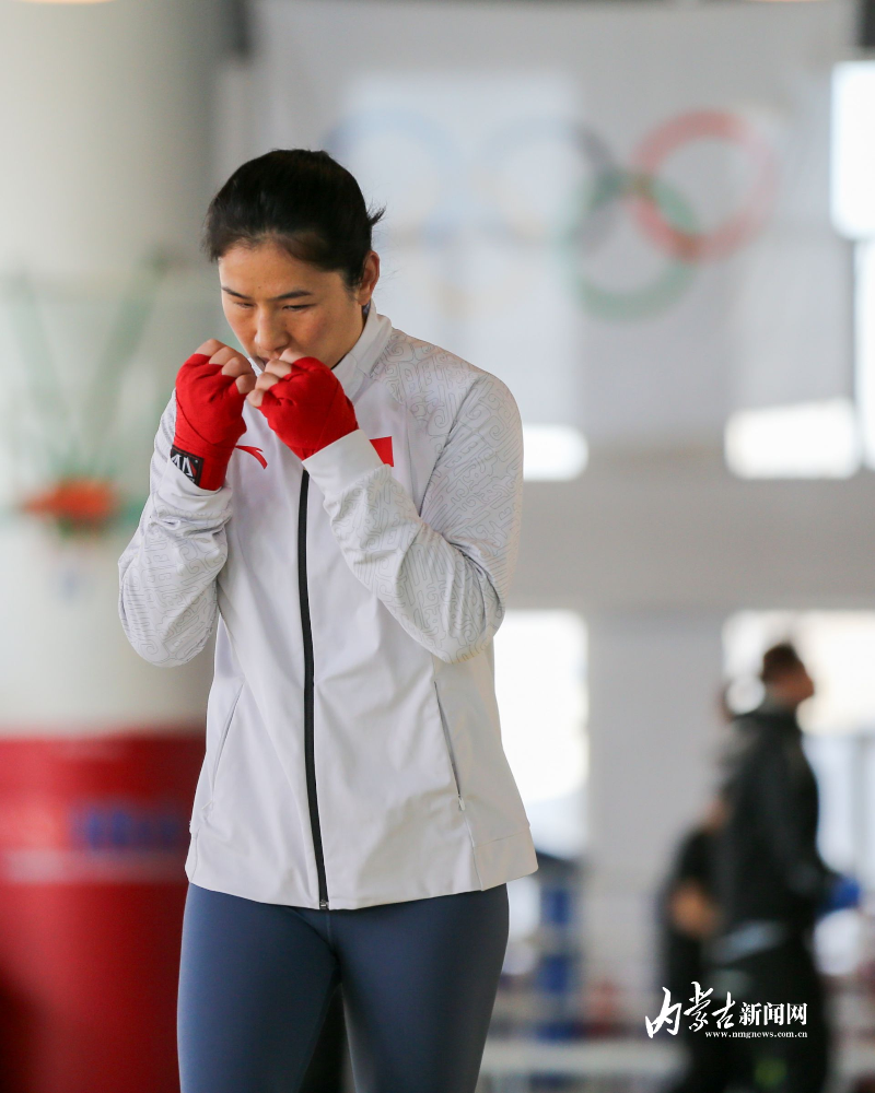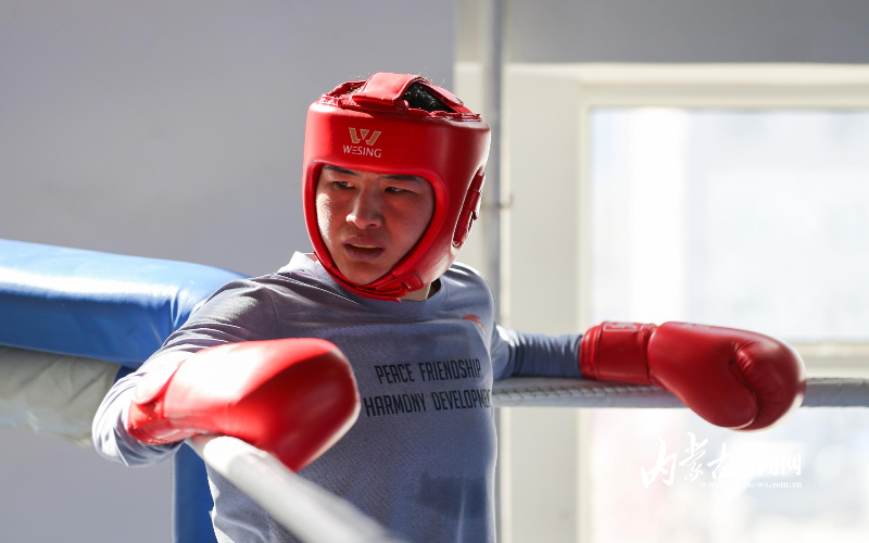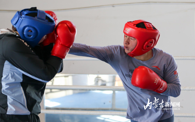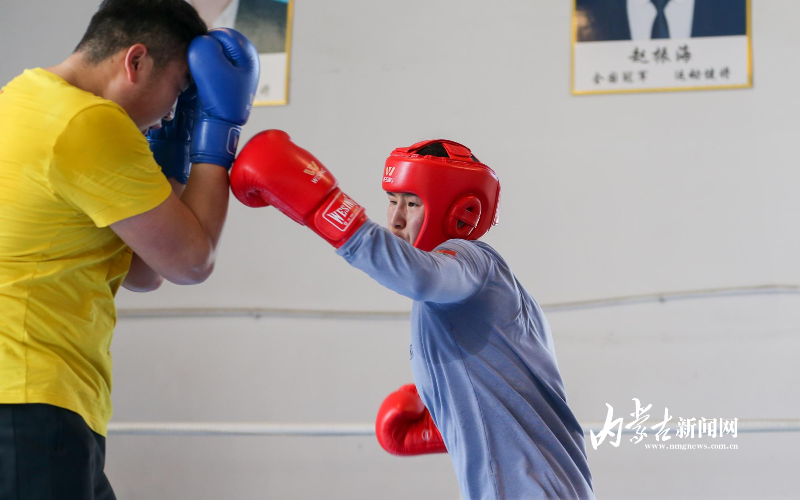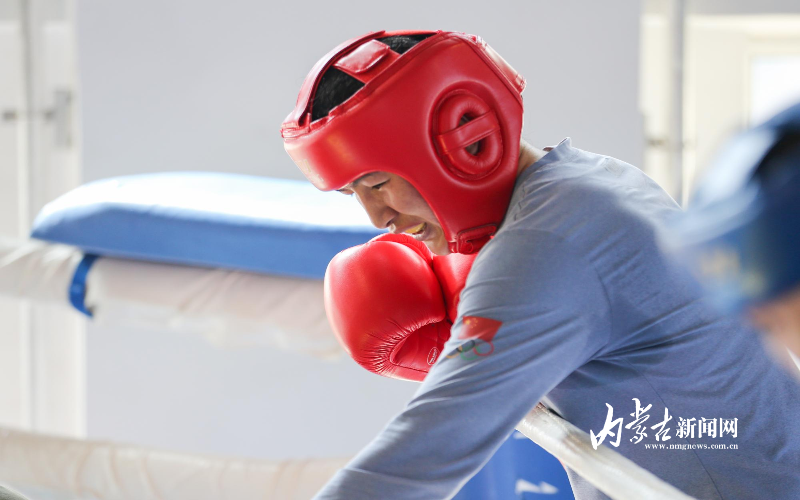 當(dāng)日,記者在拳擊館內(nèi)看到,在訓(xùn)練中李倩腳步輕盈,汗珠在額頭滑落。她戴上拳套,走向沙袋,一記記重拳砸出,發(fā)出沉悶的“砰”聲。內(nèi)蒙古女子拳擊隊(duì)的數(shù)十名拳手正在同時(shí)訓(xùn)練,沙袋晃動(dòng),呼吸急促,空氣中彌漫著汗水與堅(jiān)持的味道?!胺朗?,腳下要穩(wěn)!”內(nèi)蒙古拳擊隊(duì)總教練哈達(dá)巴特爾的聲音在空間回蕩。李倩的訓(xùn)練格外嚴(yán)格。除了常規(guī)力量訓(xùn)練、反應(yīng)訓(xùn)練和體能循環(huán),她還要進(jìn)行一對(duì)一的與男拳手的實(shí)戰(zhàn)模擬,幾次交鋒下來,氣息都愈發(fā)急促。但李倩沒有退縮,反而越打越穩(wěn),腳步靈活,出拳干凈利落。