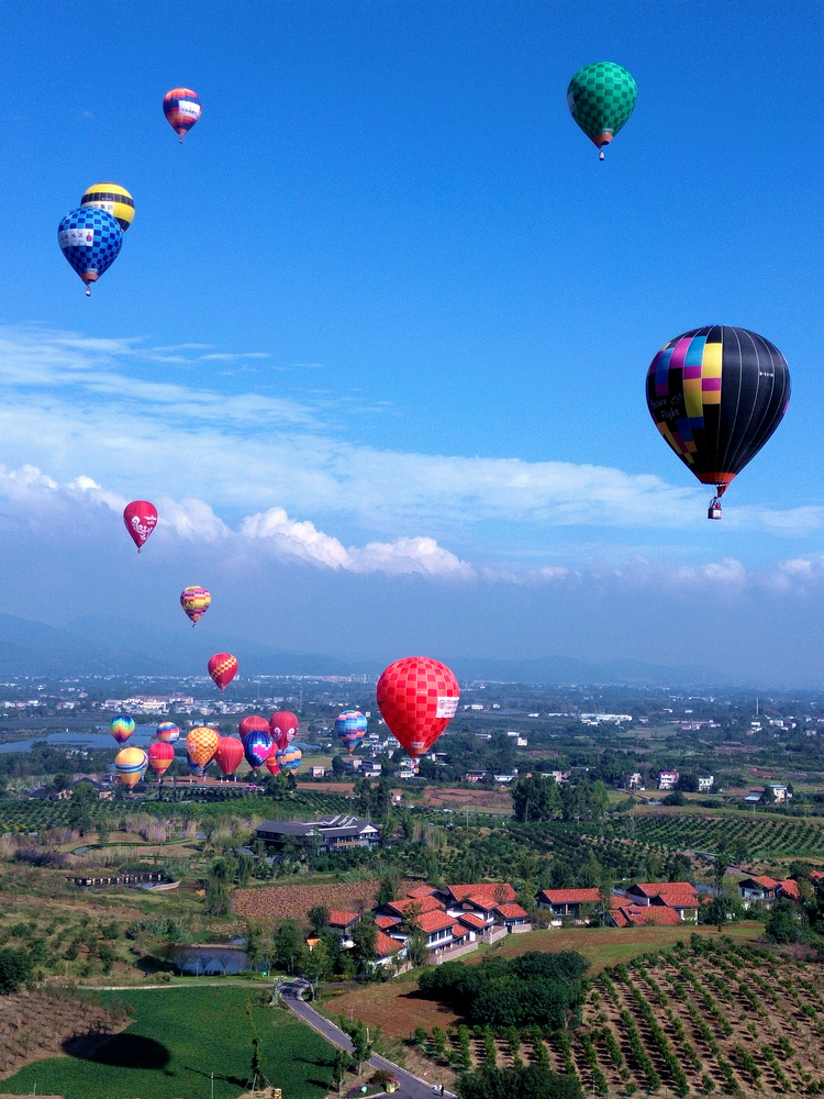 隨著開幕儀式的推進,30支熱氣球依次完成點火、充氣,在歡呼聲中緩緩升空。紅黃藍綠的熱氣球與郁郁蔥蔥的柑橘園、錯落有致的川西民居相映成趣,構(gòu)成一幅絕美畫卷。據(jù)了解,此次全國熱氣球精英賽(四川金堂站)作為活動核心賽事,將在10月15日-19日期間開展游蕩華爾茲、定點投靶、肘形飛行等10余項專業(yè)競技項目,最讓人期待的是本次賽事將熱氣球飛躍龍泉山作為了長距離飛行的競賽科目,這將是熱氣球首次飛越龍泉山。屆時,參賽選手在比賽的同時還可以在空中觀賞龍泉山脈、千里沱江、絕美古剎等景觀。