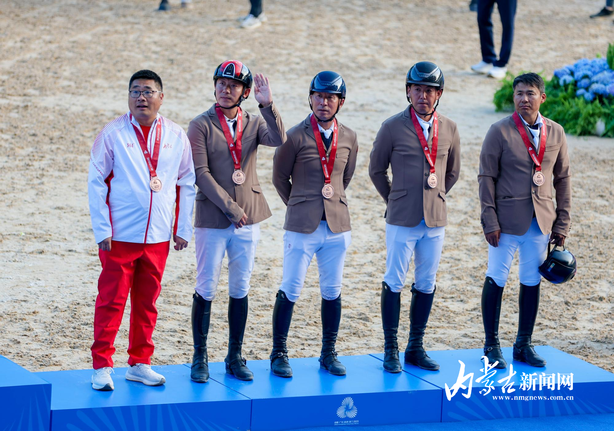 11月17日,第十五屆全國運動會馬術(shù)項目場地障礙團(tuán)體賽在深圳市光明國際馬術(shù)中心進(jìn)行,由達(dá)日瑪、劉同晏、張睿、韓豐組成的內(nèi)蒙古隊?wèi){借兩輪穩(wěn)定發(fā)揮,以總罰分31分的成績斬獲銅牌。