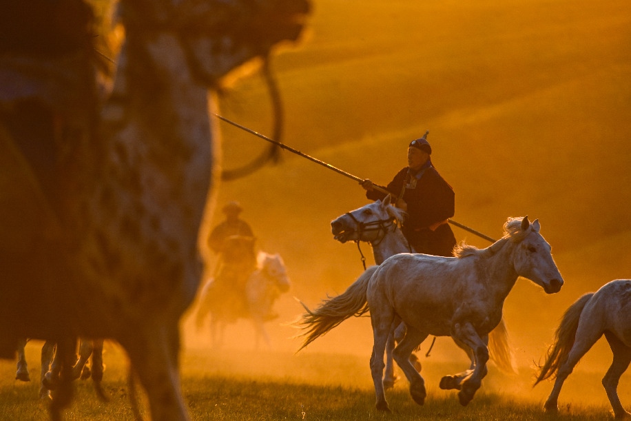 2022年5月17日,牧民在內(nèi)蒙古錫林郭勒盟西烏珠穆沁旗的草原上套馬。