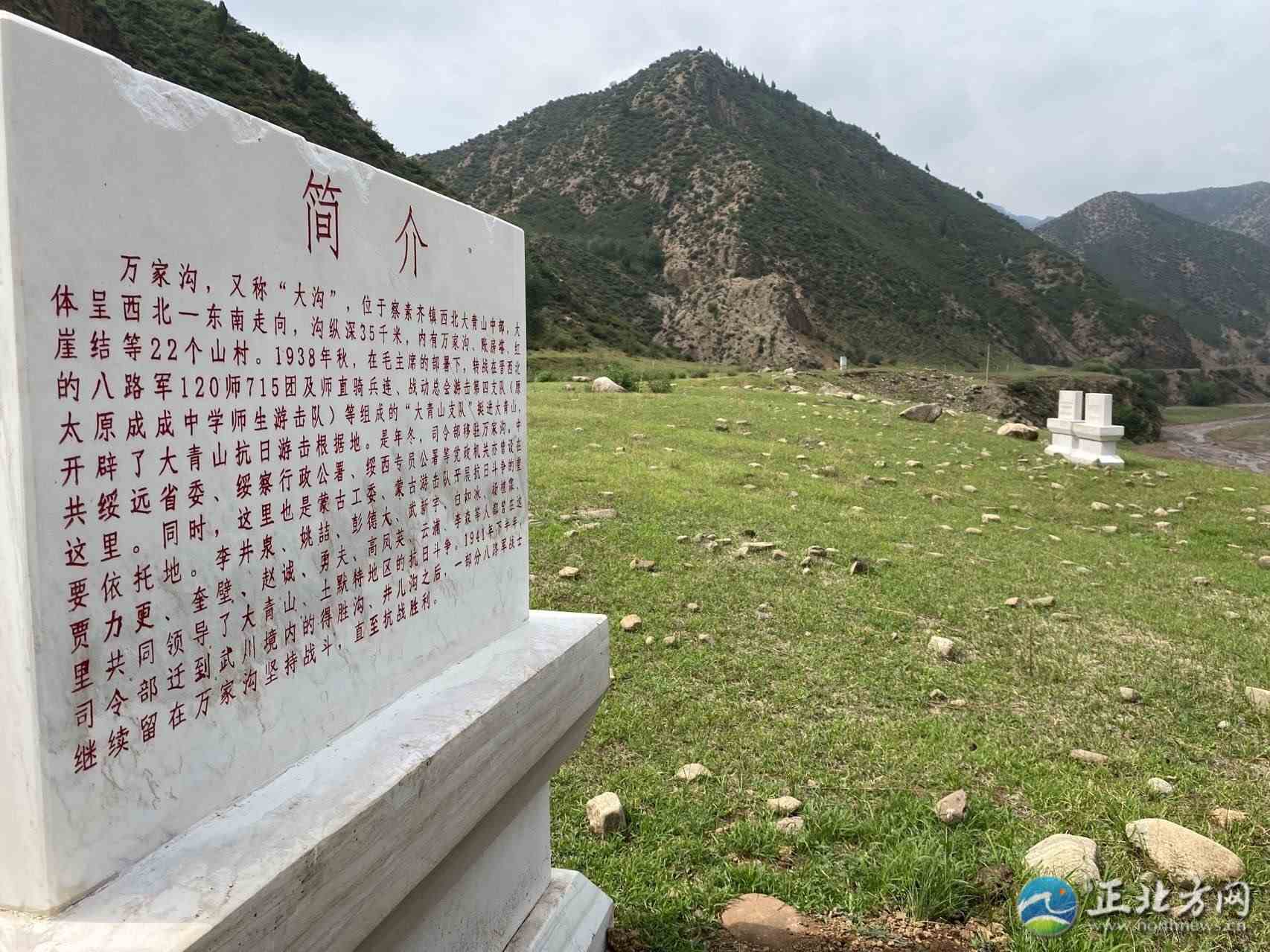 入溝不久,在綠草如茵的山坡上,就可以眺望到遠(yuǎn)處已經(jīng)廢棄的民房,有幾十年前的老房子,也有建筑時(shí)間不長(zhǎng)的,眼前的一切讓人恍惚,仿佛剛剛還在上演煙火氣息的鄉(xiāng)村生活。在這里矗立著寫(xiě)有“萬(wàn)家溝革命遺址”的漢白玉紀(jì)念碑,這是土左旗文物保護(hù)中心副主任高鷹和同事們半年前安放的。從這里,萬(wàn)家溝革命遺址的探訪(fǎng)正式開(kāi)始。