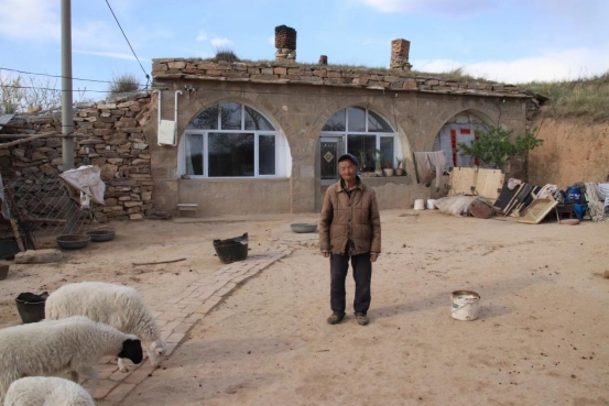 2022年5月15日,呼和浩特市長城科普學(xué)會(huì)會(huì)員來到清水河縣城關(guān)鎮(zhèn)銀滾山長城公園北面的邊墻壕村考察明大邊,在村口聽見狗吠,順著聲音走到邊墻人家門前,一只雞站下來一直看著你,等你走近的時(shí)候才扭著身子慢慢跑開;你也會(huì)聞到羊糞的味道,它們從大門縫里鉆出來,稀罕地與我們打著招呼。男主人在羊圈里清理羊糞,他抬起頭和我們說話,老人耳背,我們連說帶比劃才明白:老漢叫呂占全, 今年90歲,老伴叫郝二毛旦 ,81歲,家里只剩老兩口,兒女們都在市里工作。他們二老是邊墻壕村的守護(hù)者,世世代代一直與邊墻為伴。