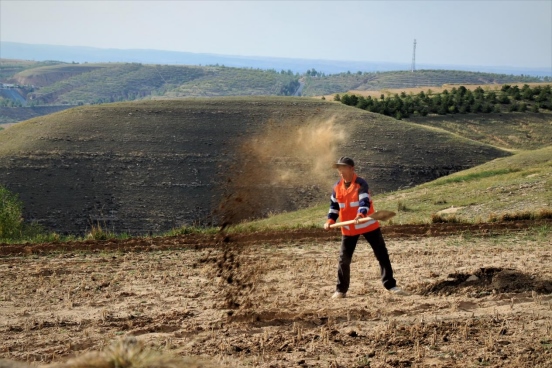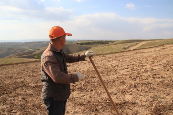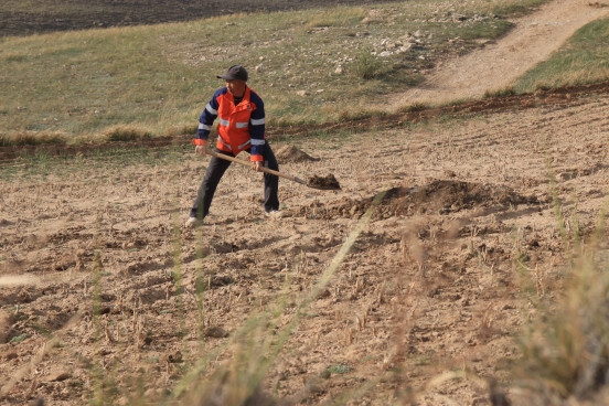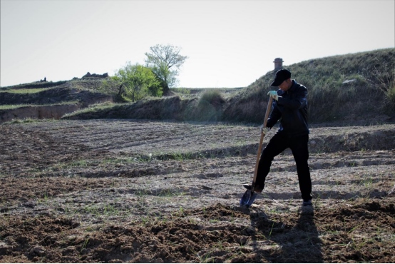 邊墻壕村是個(gè)小村莊,在村口遇見一對(duì)夫婦正在播種,據(jù)介紹全村現(xiàn)有20多戶人家四五十口人,年輕人都出去打工了,剩下些村民老人居多。讓我們?cè)俅伟宴R頭對(duì)準(zhǔn)邊墻下春播的百姓。