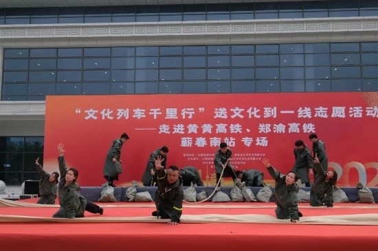 在黃黃高鐵蘄春南站、鄭渝高鐵興山綜合維修車間、浩吉鐵路襄州運營維修段舉行的三場活動亦是精彩紛呈。由牛悅敏、候孟陽、白石洋、李祥東、白愛潔、徐寧、王曉萍、周政輝、胡啟文、朵蘭、王瑛、蔣輝、以及幾十位武漢局集團公司文藝志愿者的精彩節(jié)目輪番上演。優(yōu)美動聽的歌舞、經(jīng)典優(yōu)美的京劇、詼諧幽默的大鼓、驚險刺激的雜技,還有《朱家河上的守堤人》等情景劇感人至深,活動現(xiàn)場濃厚的文藝氛圍感染著每一位觀眾。本次活動惠及鐵路沿線車務、機務、工務、供電、電務等系統(tǒng)職工和高鐵列車旅客3500余人。