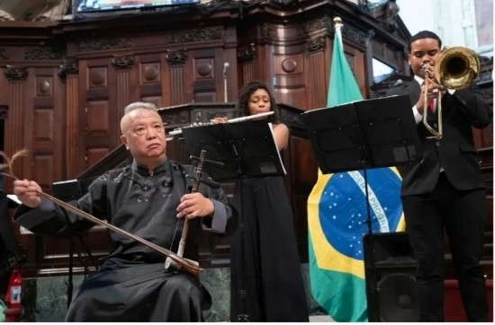 三個月的時間很快過去,童生垣的“洋徒弟”們已經(jīng)能夠熟練演奏中國民樂經(jīng)典曲目,他們也積極嘗試將民樂音色與管弦樂器和本土鼓點節(jié)奏相結(jié)合,奏響中巴音樂和鳴鏗鏘、文明交流互鑒的新樂章。據(jù)童老師介紹,巴西青年很喜歡京劇的鑼鼓經(jīng),二胡的含蓄靜美遇上巴西打擊樂的歡快跳躍,可謂各美其美,美美與共。科帕卡巴納要塞管弦樂團成員主要來自里約低收入家庭,得益于中海油巴西公司在巴《文化激勵法》框架下的資助而有機會接受藝術(shù)教育并改變?nèi)松壽E,乘著音樂的翅膀飛向更廣闊的天地。