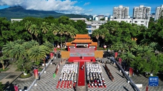 這是7月8日拍攝的五指山“上山爽一夏 故園·畢業(yè)季”暨州府故園文化節(jié)啟動儀式現(xiàn)場(無人機(jī)照片)。