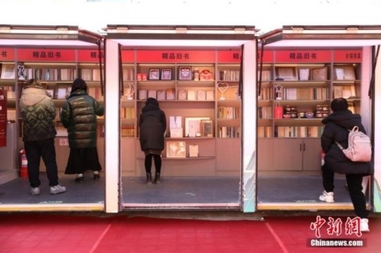 資料圖:市民在北京王府井書(shū)香市集上選購(gòu)書(shū)籍。中新社記者 趙雋 攝