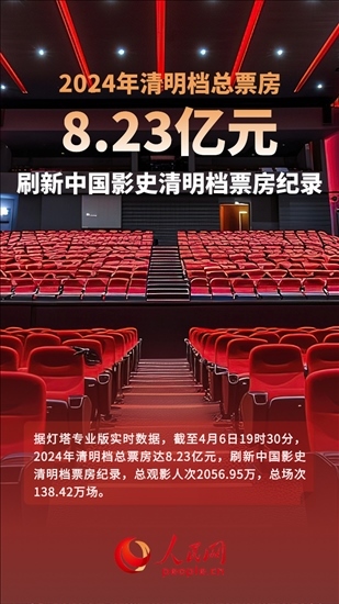 據(jù)燈塔專業(yè)版實(shí)時(shí)數(shù)據(jù),截至4月6日19時(shí)30分,2024年清明檔總票房達(dá)8.23億元,刷新中國(guó)影史清明檔票房紀(jì)錄,總觀影人次2056.95萬(wàn),總場(chǎng)次138.42萬(wàn)場(chǎng)。