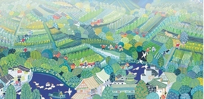 農(nóng)民畫(huà)里的余東村。鄭利民繪