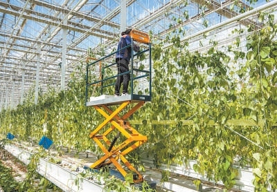 在吉林卓遠(yuǎn)農(nóng)業(yè)發(fā)展有限公司,工作人員利用無(wú)土栽培技術(shù),在室內(nèi)培育蔬菜。