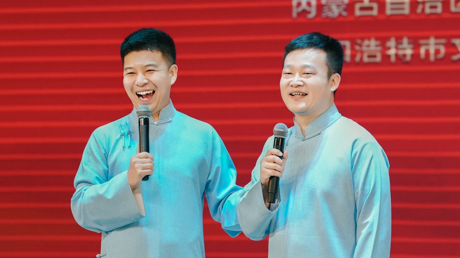 演出在舞步奔放、節(jié)奏明快的群舞《輝煌》中拉開帷幕,文藝志愿者們各展才藝,節(jié)目形式多樣,涵蓋了歌舞、小品、雜技、二人臺、呼麥等多種藝術(shù)形式。相聲《開心一刻》幽默詼諧,演員妙語連珠,引得觀眾笑聲不斷;小品《一路風(fēng)情走青城》聚焦日常點(diǎn)滴,用接地氣的故事展現(xiàn)呼市新風(fēng)貌,讓人倍感親切;歌曲《請到草原來》《歌在飛》《歌游內(nèi)蒙古》,文藝志愿者們用嘹亮歌聲傳遞對家鄉(xiāng)、對祖國的熱愛;二人臺對唱《掛起紅燈拜新年》、呼麥《馬群贊》飽含深情;藝體表演《武動乾坤》、雜技《鍋碗瓢盆交響曲》創(chuàng)意十足,現(xiàn)場驚嘆聲此起彼伏;獨(dú)舞《雄鷹》以剛勁的肢體語言,詮釋鷹擊長空磅礴氣勢;《舞蹈美草》用輕盈的舞步展現(xiàn)原野的律動;最后,全體演員與觀眾齊聲合唱《我的祖國》,將演出推向最高潮。精彩的表演贏得了現(xiàn)場400多名觀眾的陣陣掌聲和歡呼聲,氣氛熱烈非凡。