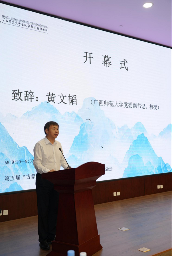 論壇包括開幕式、主旨發(fā)言、專題發(fā)言和閉幕式四個環(huán)節(jié)。開幕式由廣西師范大學出版社集團有限公司黨委副書記、總編輯,廣西師范大學古籍文獻整理研究中心主任湯文輝主持。