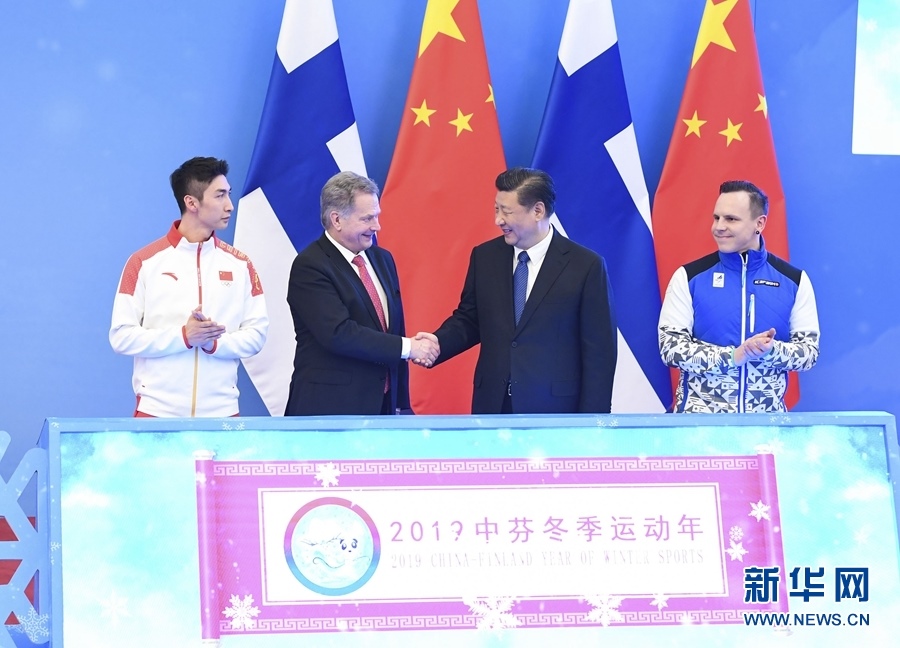 簽字儀式后,習(xí)近平同尼尼斯托共同出席了“2019中芬冬季運動年”啟動儀式。習(xí)近平在致辭中指出,新中國第一次走上奧運賽場就是參加1952年芬蘭赫爾辛基奧運會,五星紅旗第一次在奧林匹克體育場上升起。中芬冬季運動發(fā)展契合度高、互補性強,合作潛力巨大。相信“2019中芬冬季運動年”將推動兩國體育合作邁上新臺階,共同為中芬人文交流注入新活力,不斷推動中芬面向未來的新型合作伙伴關(guān)系邁上新臺階。尼尼斯托表示,中國已成為世界體育大國。芬中在體育領(lǐng)域結(jié)緣已久。芬蘭支持中國成功舉辦2022年冬奧會,很高興成為第一個同中國開啟冬季運動年的國家,相信這將進一步促進兩國人民的友誼。中國正在向冬季運動強國邁進,芬蘭愿助一臂之力。