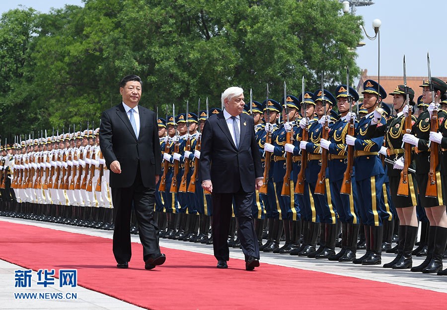 5月14日,國(guó)家主席習(xí)近平在北京人民大會(huì)堂同希臘總統(tǒng)帕夫洛普洛斯舉行會(huì)談。這是會(huì)談前,習(xí)近平在人民大會(huì)堂東門外廣場(chǎng)為帕夫洛普洛斯舉行歡迎儀式。 新華社記者 張領(lǐng) 攝