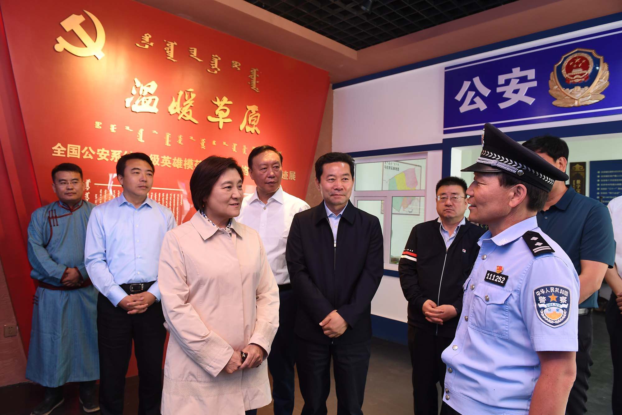 6月9日,自治區(qū)黨委副書記、自治區(qū)主席布小林來到巴彥淖爾市烏拉特后旗公安局潮格溫都爾鎮(zhèn)寶音德力格爾事跡館參觀,與寶音德力格爾親切交談。內(nèi)蒙古日?qǐng)?bào)社融媒體記者 韓卿立攝