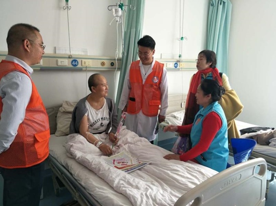 每年舉辦關(guān)愛白血病患兒活動,通過與內(nèi)蒙古紅十字會等組織合作,深入兒科病房為每名白血病患兒送上2000元的慰問金及價值500元的慰問品。不僅如此,醫(yī)務(wù)社工辦公室還結(jié)合臨床與病友的需求開展溫馨關(guān)愛活動。如:走進放療科、腫瘤內(nèi)科病房,設(shè)立流動圖書車;開展患者陪護服務(wù),減少患者對醫(yī)院的恐懼、孤獨感;向有需要的患者及家屬介紹醫(yī)保咨詢、慈善救助、遺體捐獻和家屬住宿、生活服務(wù)等有關(guān)途徑,同時注意發(fā)現(xiàn)患者對醫(yī)療服務(wù)的隱性需求,及時向醫(yī)護人員反映。