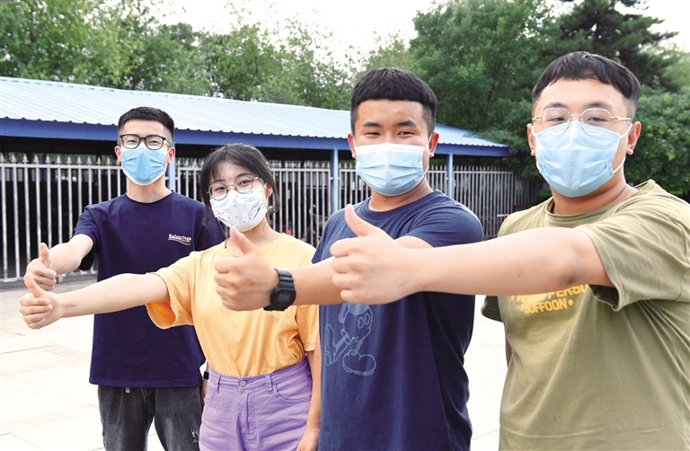 7月6日,提前到高考考點查看考場的首府高三學(xué)子為自己加油鼓勁。