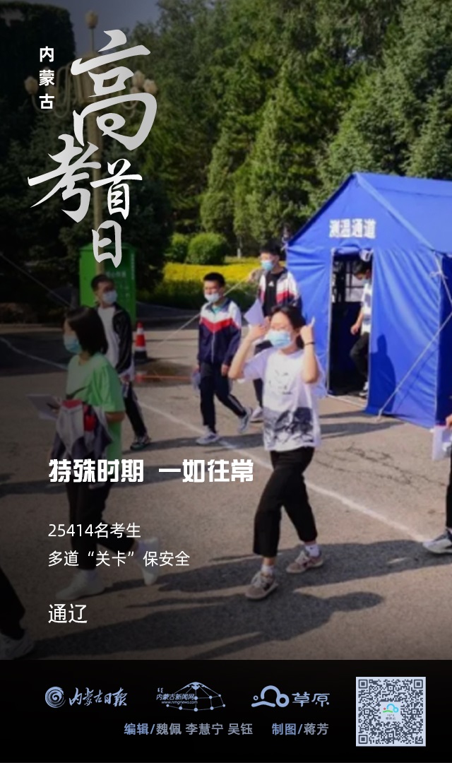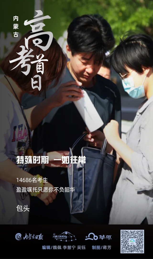 今年,我區(qū)高考報(bào)名總?cè)藬?shù)197901人,其中參加全國(guó)統(tǒng)一考試163812人。全區(qū)共設(shè)105個(gè)考區(qū)、184個(gè)考點(diǎn)、5786個(gè)考場(chǎng)。內(nèi)蒙古各盟市全力做好防護(hù)與保障工作,高考首日,一如往常。