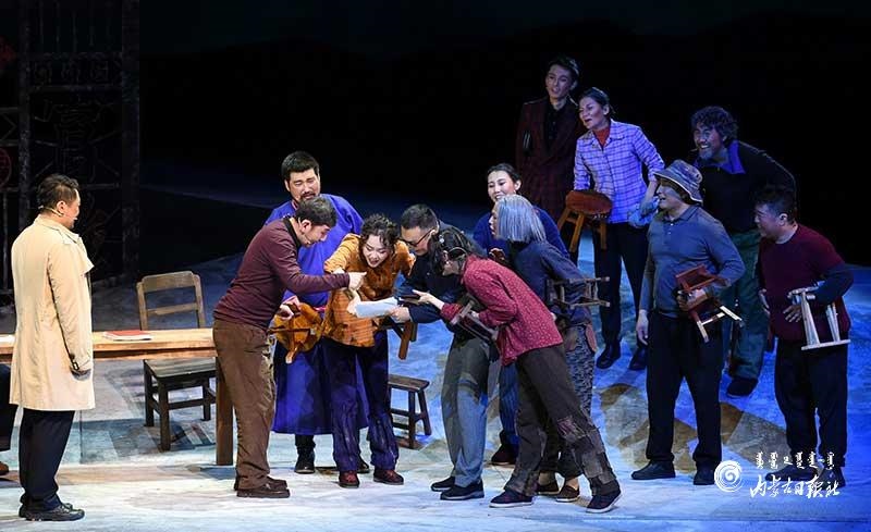 在劇目創(chuàng)作排演的過(guò)程中,內(nèi)蒙古民族藝術(shù)劇院還特別聘請(qǐng)了上海戲劇學(xué)院藝術(shù)研究所副教授高城博士、上海話劇藝術(shù)中心導(dǎo)演郭洪波等話劇界名家,通過(guò)導(dǎo)師帶學(xué)員的方式,給團(tuán)隊(duì)給予專業(yè)指導(dǎo)和建議,極大提升了劇院編劇、導(dǎo)演和演員等青年人才的專業(yè)水平和能力。2019年,完成首演后的《紅手印》迅速投入基層巡演中,先后前往烏蘭察布市察右中旗、察右前旗、巴彥淖爾市烏拉特中旗、烏拉特前旗等地演出,不僅豐富了基層百姓的精神文化生活,也收獲了最真實(shí)的觀眾反饋。