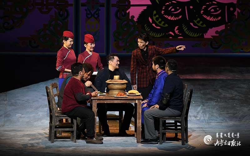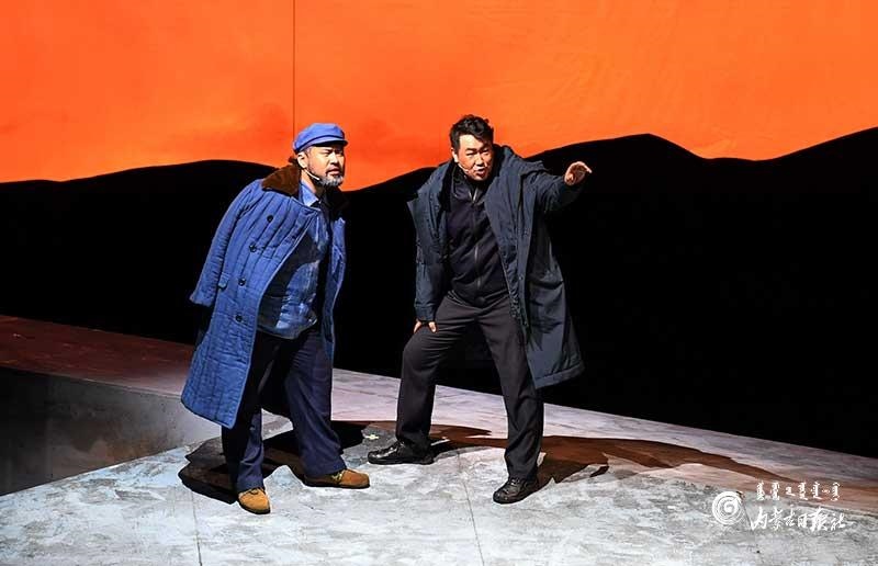 參演《紅手印》的都是來(lái)自草原的蒙古族演員,不僅要完成漢語(yǔ)的臺(tái)詞,還要熟練自然地講出大量?jī)?nèi)蒙古西部方言對(duì)白?!皩?duì)于話劇演員來(lái)說(shuō),臺(tái)詞功底太重要了。為了練好方言,我們好多演員早起練功的時(shí)候嘴里都念念有詞地說(shuō)著西部方言。”演員烏仁朝魯門說(shuō)。他扮演的新扎木村主任令人印象深刻,一個(gè)一心想帶百姓致富卻屢遭失敗的老黨員形象?!爸氨硌輾v史題材的話劇大多是從影像和資料了解人物,這部戲的題材貼近觀眾們的現(xiàn)實(shí)生活,必須接地氣才能得到認(rèn)可。我通過(guò)寫人物小傳的方式,深挖村主任的人物個(gè)性和從失望到燃起希望的內(nèi)心世界,讓觀眾能夠認(rèn)可這個(gè)形象?!睘跞食旈T說(shuō)。