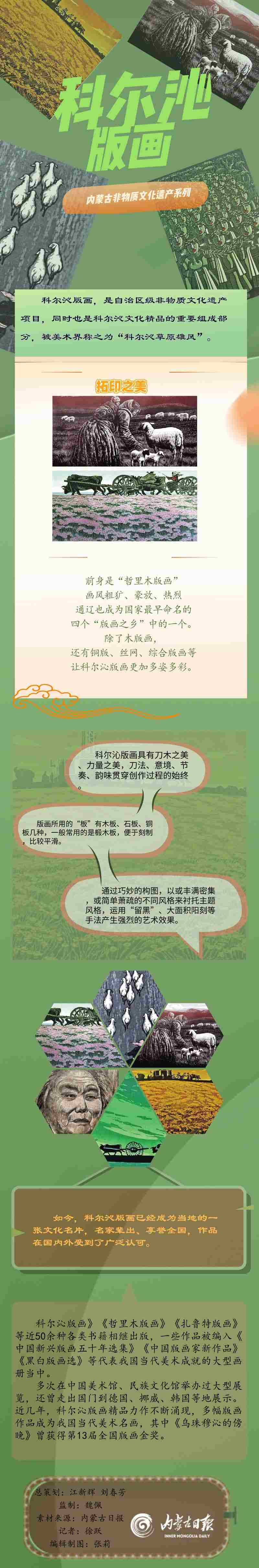 中國木刻版畫已有上千年史,自二十世紀三十年代起,創(chuàng)作版畫經魯迅先生提倡后取得了巨大發(fā)展。內蒙古科爾沁版畫繼承發(fā)揚中國版畫的精髓,兼收并蓄,創(chuàng)新發(fā)展,以雄渾、純樸、大氣、高雅而著稱,具有鮮明的草原特色。