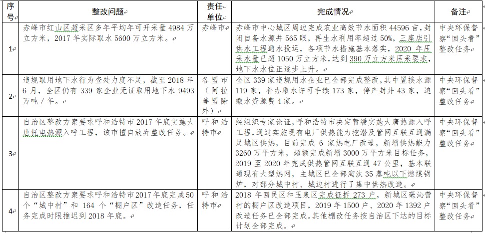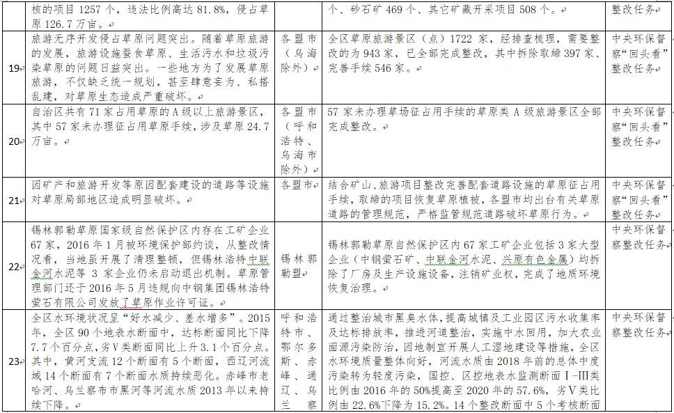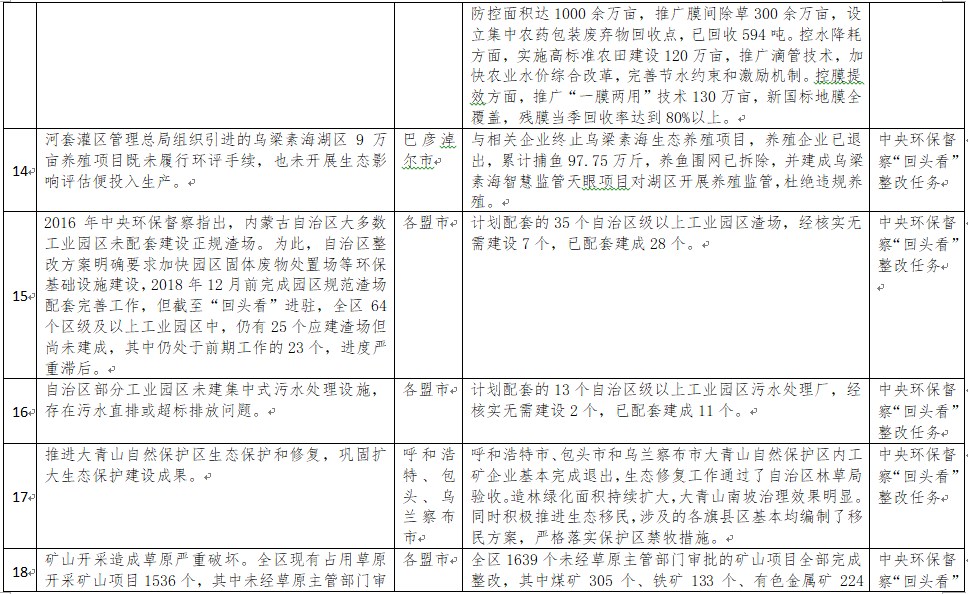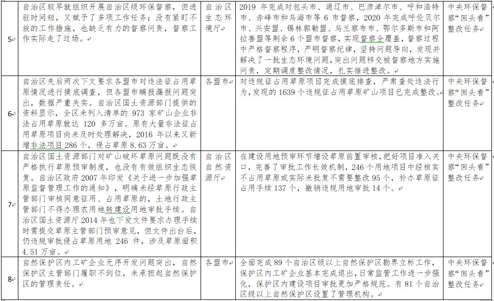 中央環(huán)境保護督察以來,自治區(qū)各級黨委政府及相關部門高度重視反饋意見整改工作,貫徹落實習近平生態(tài)文明思想的自覺性和主動性顯著增強,采取強有力措施積極推動整改工作,整改工作取得階段性成果。近期部分整改任務已通過自治區(qū)相關委辦廳局驗收,現予以公示,公示期2021年2月5日至2月9日,未提出異議的整改任務給予銷號(聯(lián)系電話:0471-4632171)。