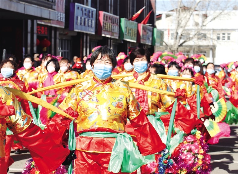 2月17日,呼和浩特市賽罕區(qū)黃合少鎮(zhèn)居民正在扭秧歌。當(dāng)日,黃合少鎮(zhèn)舉辦社火表演,各村秧歌隊踏著鼓點,舞動紅綢,為觀眾獻(xiàn)上了一臺精彩紛呈的秧歌盛宴,歡度春節(jié)。(內(nèi)蒙古日報記者 孟和朝魯 攝)
