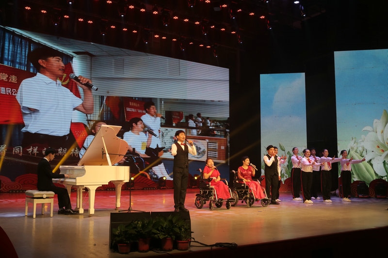 跟黨走·內(nèi)蒙古自治區(qū)殘疾人聯(lián)合會慶祝建黨100周年全區(qū)殘疾人文藝演出”,在呼和浩特市舉辦。來自全區(qū)各級殘聯(lián)組織的近200名殘疾人演員和中國殘疾人藝術(shù)團的演員們?yōu)楝F(xiàn)場及網(wǎng)絡(luò)直播的觀眾們帶來了一場規(guī)模宏大、精彩紛呈視聽盛宴。