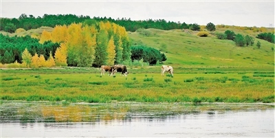 “秋天的草原更令人迷醉。絲絲涼風(fēng),清爽宜人,湛藍天空,明靜高遠,柔美蜿蜒的莫日格勒河,悠然自得的牧馬生活,最讓我難忘的是呼倫貝爾的綠?!贝筮B的王女士帶著父母和孩子自駕游呼倫貝爾,從森林到草原,一路尋綠穿行。