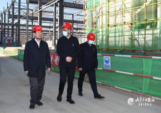 深秋將盡,土右旗新型工業(yè)園區(qū)新特能源高純多晶硅項目施工現(xiàn)場依然熱火朝天,平均每天都有數(shù)千名工人加班加點施工作業(yè)。石泰峰一走進項目工地,就被這里如火如荼的建設場景所感染。他認真聽取園區(qū)建設、項目實施情況介紹,詳細了解智能綠色工廠建設、低碳循環(huán)經(jīng)濟產(chǎn)業(yè)鏈布局等情況。得知項目開工以來僅用3個多月時間就完成絕大部分基建工程任務、進入設備安裝階段,石泰峰欣慰地說,工作推進有力度,項目建設才會有速度,只有實打?qū)嵉馗刹拍芤姷竭@樣的成效。他勉勵新特能源公司“行如其名”,把更多具有“新”和“特”的優(yōu)勢產(chǎn)業(yè)布局到內(nèi)蒙古,積極引進發(fā)展低能耗、低排放、高附加值的產(chǎn)業(yè)項目,為促進地方經(jīng)濟高質(zhì)量發(fā)展貢獻力量。在雙良硅材料公司、金力永磁公司、大地熊永磁科技公司、杉杉科技公司、華鉞實業(yè)公司和萬科奧運冰雪中心,石泰峰走進工地、車間、展廳,與企業(yè)負責人深入交流,詢問企業(yè)對地方營商環(huán)境的感受和評價??吹礁鱾€項目都在抓進度、趕工期,推進速度快、成效好,石泰峰給予充分肯定。他指出,一個地區(qū)的營商環(huán)境好不好,不是政府說了算,而是市場主體說了算,主要看企業(yè)愿意不愿意來投資,企業(yè)來了以后項目推進得快不快、建設得好不好。他對當?shù)馗刹空f,只有我們有誠心、有決心,企業(yè)投資發(fā)展才會有信心。要持續(xù)用力抓好優(yōu)化營商環(huán)境工作,把服務保障企業(yè)運行和項目建設作為重中之重,及時研究解決企業(yè)反映的困難和問題,切實為企業(yè)提供全方位全周期的優(yōu)質(zhì)高效服務。