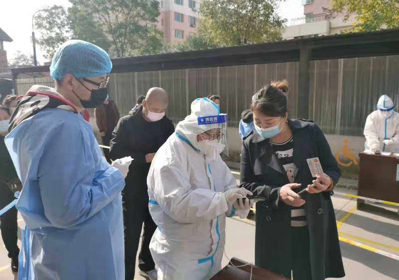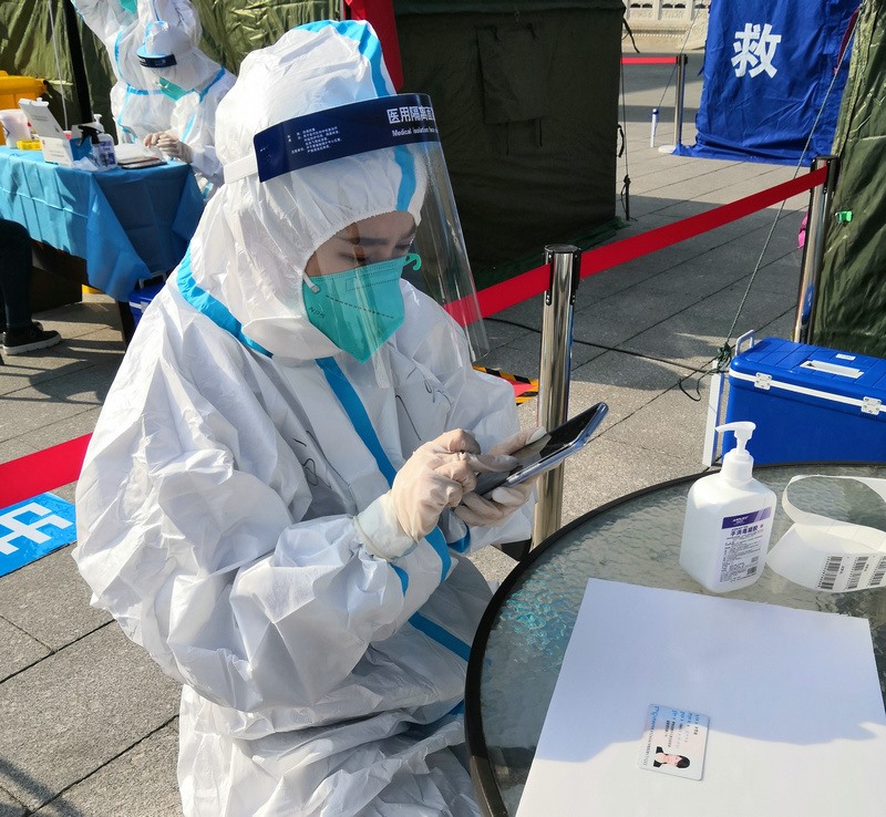 “昨天分配的任務(wù)是信息采集,因為第二輪核酸檢測要使用新的采集系統(tǒng),所以今天早晨7:00到崗后,大家開始學(xué)習(xí)信息采集系統(tǒng)的使用。信息采集不能出任何差錯,每一個信息采集員都很緊張,謹(jǐn)慎操作每一步?!痹诤艉秃铺厥杏袢獏^(qū)大召社區(qū)核酸檢測點(diǎn)參加志愿服務(wù)的張華媛說,8:00準(zhǔn)時開始第二次核酸檢測,直到下午2:00換崗,連續(xù)6小時緊張謹(jǐn)慎的信息采集,中途沒有休息過,整個身體感覺有點(diǎn)僵了。雖然很累,但是能成為抗疫戰(zhàn)士中的一員,和醫(yī)護(hù)人員、社區(qū)工作者及其他志愿者一起為呼和浩特抗疫貢獻(xiàn)自己的一份力,是一件非常有意義的事。