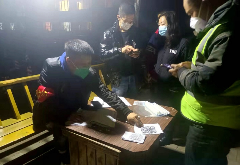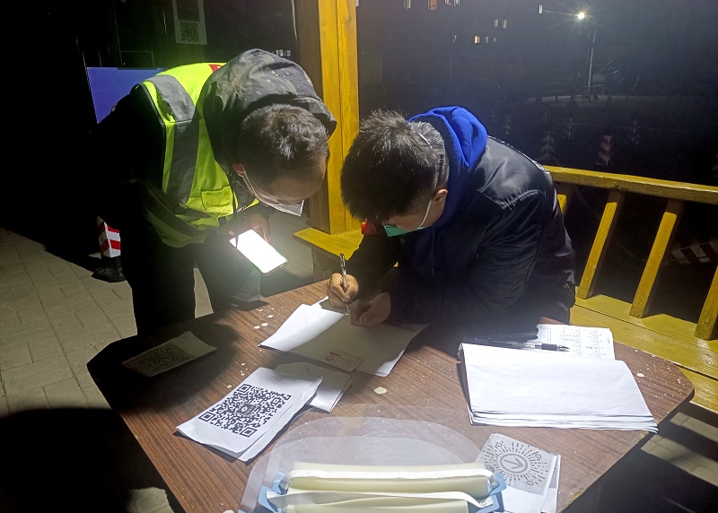 夜已深,志愿者仍堅守在崗位上
