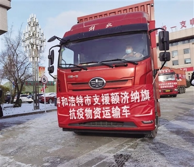 鑒于額濟納旗疫情防控任務依然艱巨、醫(yī)療物資用量仍然很大,呼和浩特市新冠病毒疫情聯(lián)防聯(lián)控暨新冠病毒疫情防控工作指揮部決定立即捐贈第一批價值300萬元的防疫物資。在呼和浩特市新冠病毒疫情聯(lián)防聯(lián)控暨新冠病毒疫情防控工作指揮部的統(tǒng)籌部署下,指揮部物資保障組成員單位市財政局、發(fā)改委、衛(wèi)健委、商務局、交通局、紅十字會全力以赴、齊心協(xié)力,愛心企業(yè)、金融機構(gòu)積極捐贈,呼和浩特警備區(qū)傾力相助,讓愛心“大禮包”如期發(fā)貨。在發(fā)車現(xiàn)場,中國銀行股份有限公司內(nèi)蒙古自治區(qū)分行辦公室主任葛華表示,面對疫情,中國銀行內(nèi)蒙古分行支援抗疫責無旁貸,重任在肩必須挺身,義無反顧地與全區(qū)人民站在一起,守望相助、同心戰(zhàn)“疫”、共克時艱,在積極做好疫情防控和金融服務的同時,主動擔當責任,通過紅十字會向呼和浩特市、阿拉善盟、二連浩特市捐款近百萬元,為地方開展疫情防控盡一份綿薄之力。金宇生物技術(shù)股份有限公司黨委副書記張占福告訴記者:“疫情無情,人間有愛。作為動物疫苗生產(chǎn)企業(yè),能為我區(qū)抗擊疫情出一份力,奉獻一份愛,是企業(yè)應盡的社會責任和義務。”在共抗疫情的關(guān)鍵時刻,內(nèi)蒙古顯鴻科技股份有限公司積極響應市政府號召,在做好企業(yè)疫情防控的同時,第一時間組織抗疫物資,用實際行動踐行顯鴻科技“愛黨、愛國、愛企、愛家”情懷。短短幾天時間內(nèi),伊利、蒙牛、盛健、華訊等18家企業(yè)進行愛心捐贈,大家同心同德、同向同行,堅決助力自治區(qū)打贏這場疫情防控阻擊戰(zhàn)。