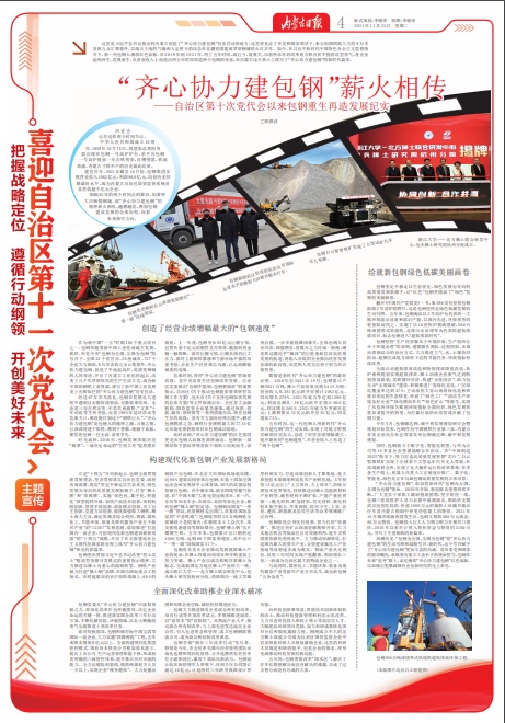 這里是習(xí)近平總書(shū)記指出的內(nèi)蒙古創(chuàng)造了“齊心協(xié)力建包鋼”歷史佳話(huà)的地方;這里曾見(jiàn)證了在黨和國(guó)家領(lǐng)導(dǎo)下,來(lái)自祖國(guó)四面八方的8萬(wàn)多各族兒女匯聚塞外,以戰(zhàn)天斗地的氣魄和人定勝天的信念在北疆荒漠建成草原鋼城的火紅歲月。如今,在習(xí)近平新時(shí)代中國(guó)特色社會(huì)主義思想指引下,新一代包鋼人賡續(xù)紅色血脈,從2016年到2021年,用了五年時(shí)間,戰(zhàn)巨虧,渡難關(guān),以前所未有的改革勇力和百折不撓的攻堅(jiān)勇氣,使企業(yè)起死回生、涅槃重生,從營(yíng)業(yè)收入上創(chuàng)造出用五年時(shí)間再造兩個(gè)包鋼的奇跡,在內(nèi)蒙古這片熱土上續(xù)寫(xiě)了“齊心協(xié)力建包鋼”的新時(shí)代篇章。