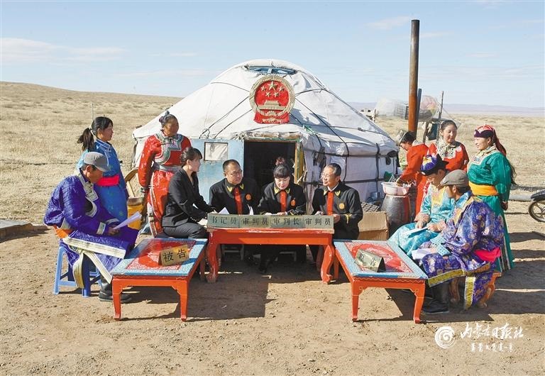 錫林浩特市人民法院組建的“牧區(qū)巡回法庭”開到了牧民家門口,被當(dāng)?shù)厝罕娪H切地稱為“馬背法庭”。內(nèi)蒙古日?qǐng)?bào)社融媒體記者 馬建荃 攝