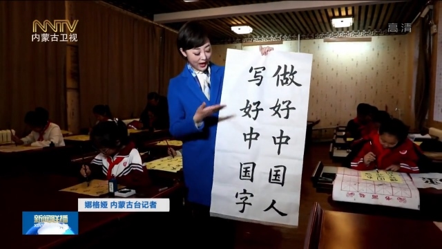 娜格婭 內(nèi)蒙古臺(tái)記者:做好中國(guó)人,寫好中國(guó)字,你能想到我手中的這些字,是一個(gè)四年級(jí)小朋友寫的嗎?我現(xiàn)在是在呼和浩特鋼鐵路第二小學(xué)的興趣課上,學(xué)生們正在學(xué)習(xí)寫毛筆字,一筆一劃傳承書法文化,一撇一捺書寫著愛國(guó)情懷。像這樣的興趣課每周有一次。
