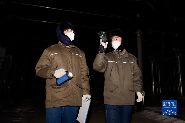 國(guó)家電網(wǎng)滿洲里220千伏變電站位于滿洲里市西郊,負(fù)責(zé)給全市三分之一的用戶供電。夜越來(lái)越深,“95后”值班員王東亞和同事拿著測(cè)溫設(shè)備,開(kāi)始對(duì)戶外輸變電設(shè)備進(jìn)行檢查。他們深一腳淺一腳地踩著雪,仔細(xì)檢查高壓開(kāi)關(guān)外的伴熱帶是否正常工作?!拔覀兣吕?,設(shè)備更怕冷,天越冷越要加強(qiáng)巡視?!蓖鯑|亞說(shuō)。