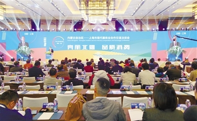 自治區(qū)商務(wù)廳在上海舉辦“內(nèi)蒙古自治區(qū)—上海市現(xiàn)代服務(wù)業(yè)合作交流洽談會(huì)”。內(nèi)蒙古日?qǐng)?bào)社融媒體記者高慧攝