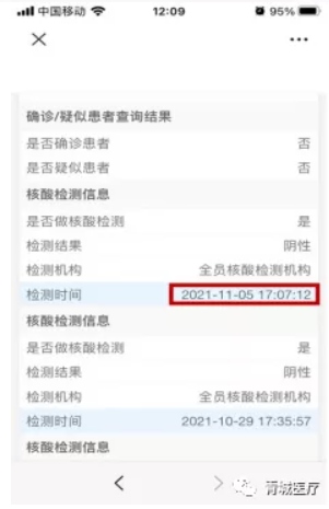 市民7天內(nèi)所做的核酸檢測結(jié)果會在健康碼綠碼下方顯示,7天之后信息會轉(zhuǎn)到綠碼下方的“個人健康風(fēng)險評估(初步流調(diào))表”中,點擊后可查看最近3次的核酸檢測結(jié)果。核酸檢測結(jié)果具體到日期和具體時點。