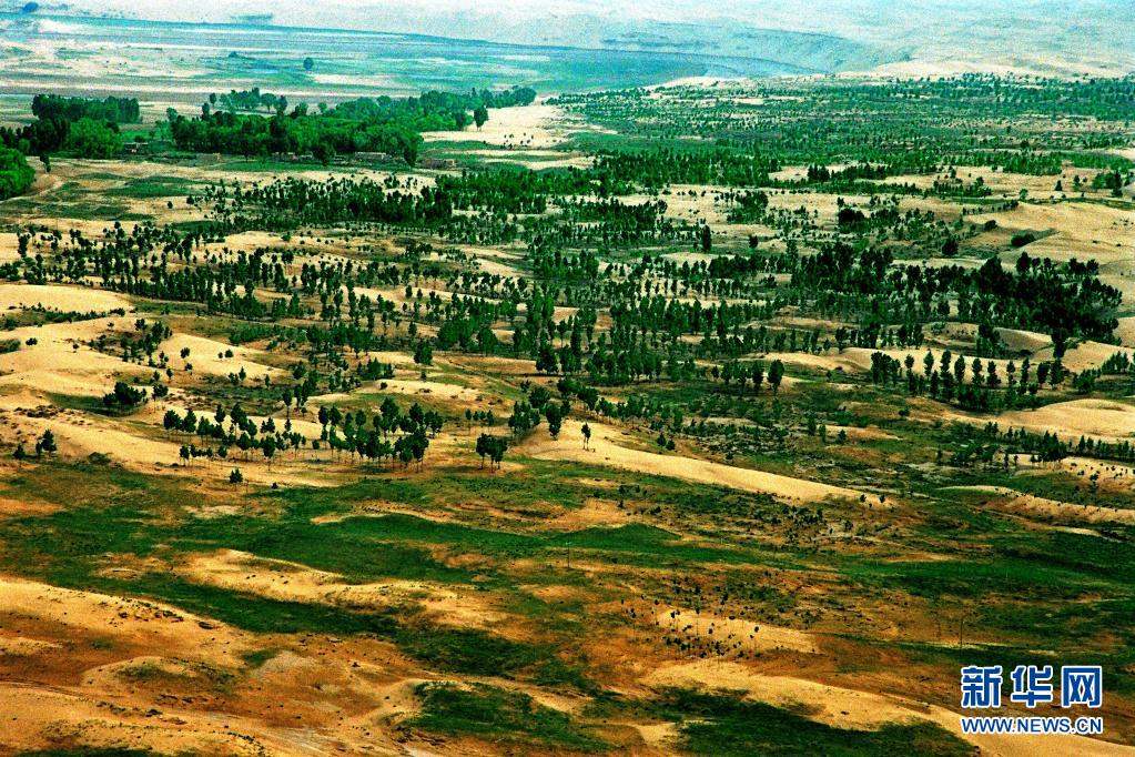 經(jīng)多年生態(tài)治理,如今的庫(kù)布其沙漠逐步形成一道抵御風(fēng)沙、保持水土、護(hù)農(nóng)促牧的“綠色長(zhǎng)城”。新華網(wǎng) 發(fā)(劉博侖 攝)