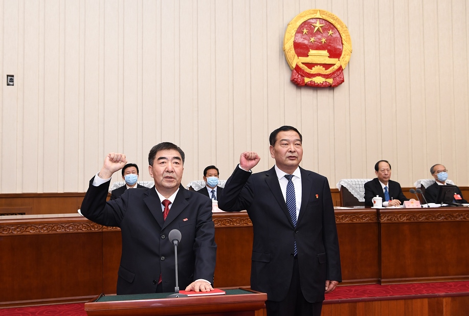 自治區(qū)十三屆人大常委會(huì)第三十四次會(huì)議在圓滿完成各項(xiàng)議程后,于3月29日下午閉幕。自治區(qū)黨委書記、人大常委會(huì)主任石泰峰主持第二次全體會(huì)議,并為新任職人員頒發(fā)任命書。