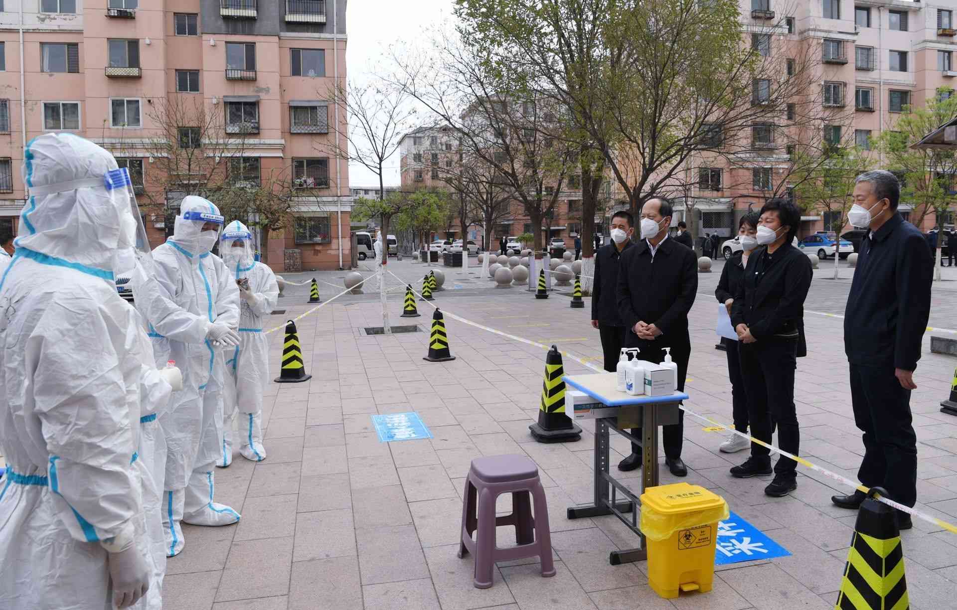 龍苑小區(qū)B區(qū)已發(fā)現(xiàn)確診病例,石泰峰趕赴該小區(qū)實地檢查。一到小區(qū)門口,他就向工作人員詳細(xì)了解人員隔離、小區(qū)管控、生活保障等情況。他強調(diào),管控要管嚴(yán)管住,但暖心的服務(wù)不能少。各級干部要將心比心、換位思考,把各方面的情況都考慮得周密細(xì)致一些,加強物資調(diào)配供應(yīng),做好群眾思想疏導(dǎo)工作,確保群眾生活需求及時保障到位。特別是要高度關(guān)注特殊群體,把底數(shù)摸清,把工作做細(xì),切實保障好他們的就醫(yī)用藥需求。石泰峰還走進德景苑小區(qū),與核酸采樣點的同志深入交談,詳細(xì)了解采樣進度、采樣能力及如何保證應(yīng)檢盡檢等情況。石泰峰強調(diào),要有序組織好每個社區(qū)的核酸檢測,及時準(zhǔn)確掌握清楚每個人的情況,務(wù)必做到應(yīng)檢盡檢、不落一人。