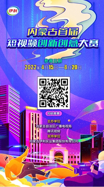 為進一步推動網(wǎng)絡視聽行業(yè)高質(zhì)量發(fā)展,充分發(fā)揮優(yōu)秀網(wǎng)絡視聽作品示范引領作用,激發(fā)網(wǎng)絡視聽創(chuàng)作創(chuàng)新活力,唱響新時代主旋律,壯大主流輿論,傳播正能量,內(nèi)蒙古自治區(qū)廣播電視局特舉辦“內(nèi)蒙古首屆短視頻創(chuàng)新創(chuàng)意大賽”。本次大賽以“奮進新征程建功新時代亮麗內(nèi)蒙古”為主題,聯(lián)合騰訊視頻、內(nèi)蒙古伊利實業(yè)集團股份有限公司共同舉辦。