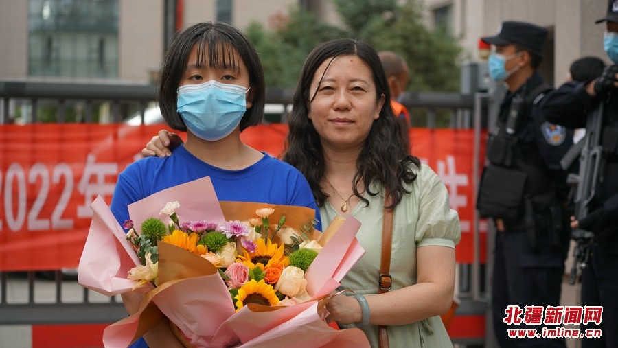 6月8日下午5時30分,呼和浩特市第二中學考點外站滿了考生親屬、朋友。他們或手捧鮮花、或拉上慶祝橫幅,等待考生們“凱旋”。