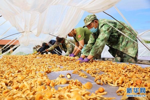 內(nèi)蒙古森工集團阿里河森工公司齊奇嶺林場種植戶將采摘后的滑子菇進行晾曬。新華網(wǎng) 石毅 攝
