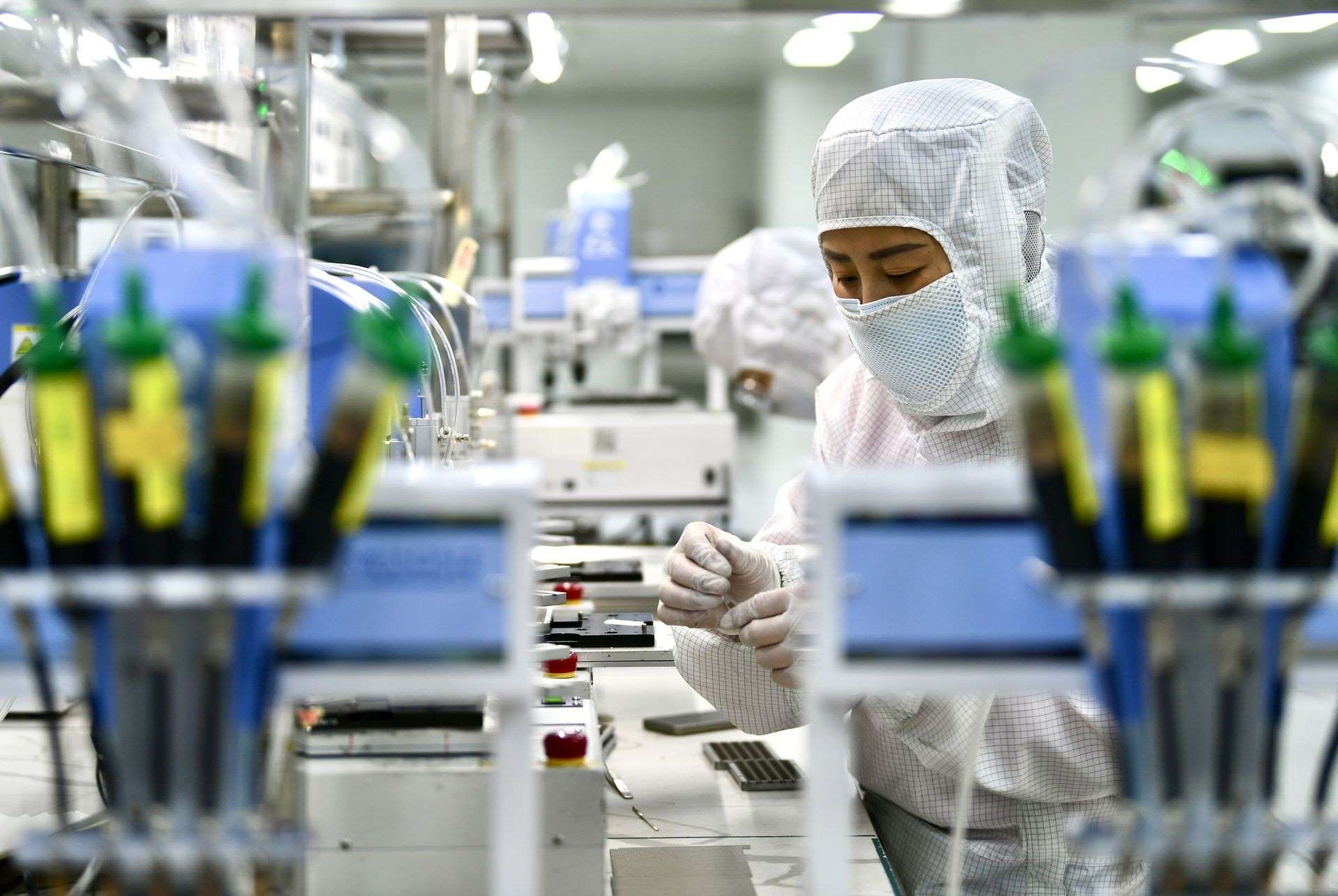 包頭稀土高新區(qū)稀土應(yīng)用產(chǎn)業(yè)園區(qū)內(nèi),包頭江馨微電機(jī)科技有限公司工作人員正在生產(chǎn)線(xiàn)上忙碌。